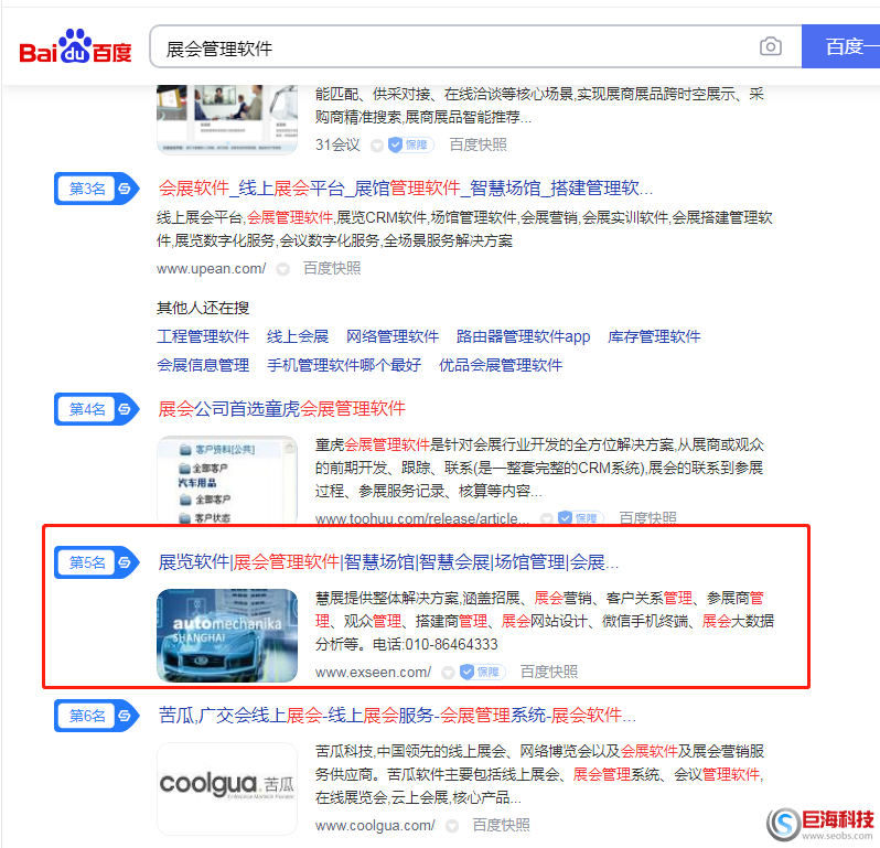 關鍵詞 ”展會管理軟件”優化排名達標案例