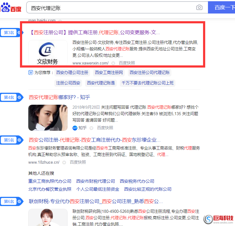 關鍵詞 ”西安代理記賬等”優化排名達標案例